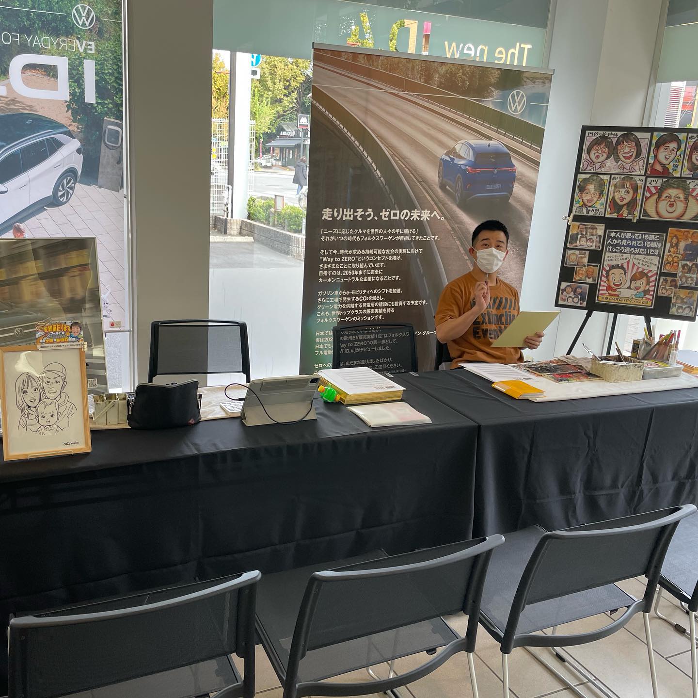フォルクスワーゲン本山店様からのご依頼でお客様向けのイベントに作家2名体制で出張。ダイレクトメールなどで事前に予約をされた方やご来店された方を対象に沢山の似顔絵を描かせて頂きました。この日は珍しく車の似顔絵のご依頼も(※人に比べてかなりお時間頂きます)。イベントにご来場されたお客様、ありがとうございました^_^