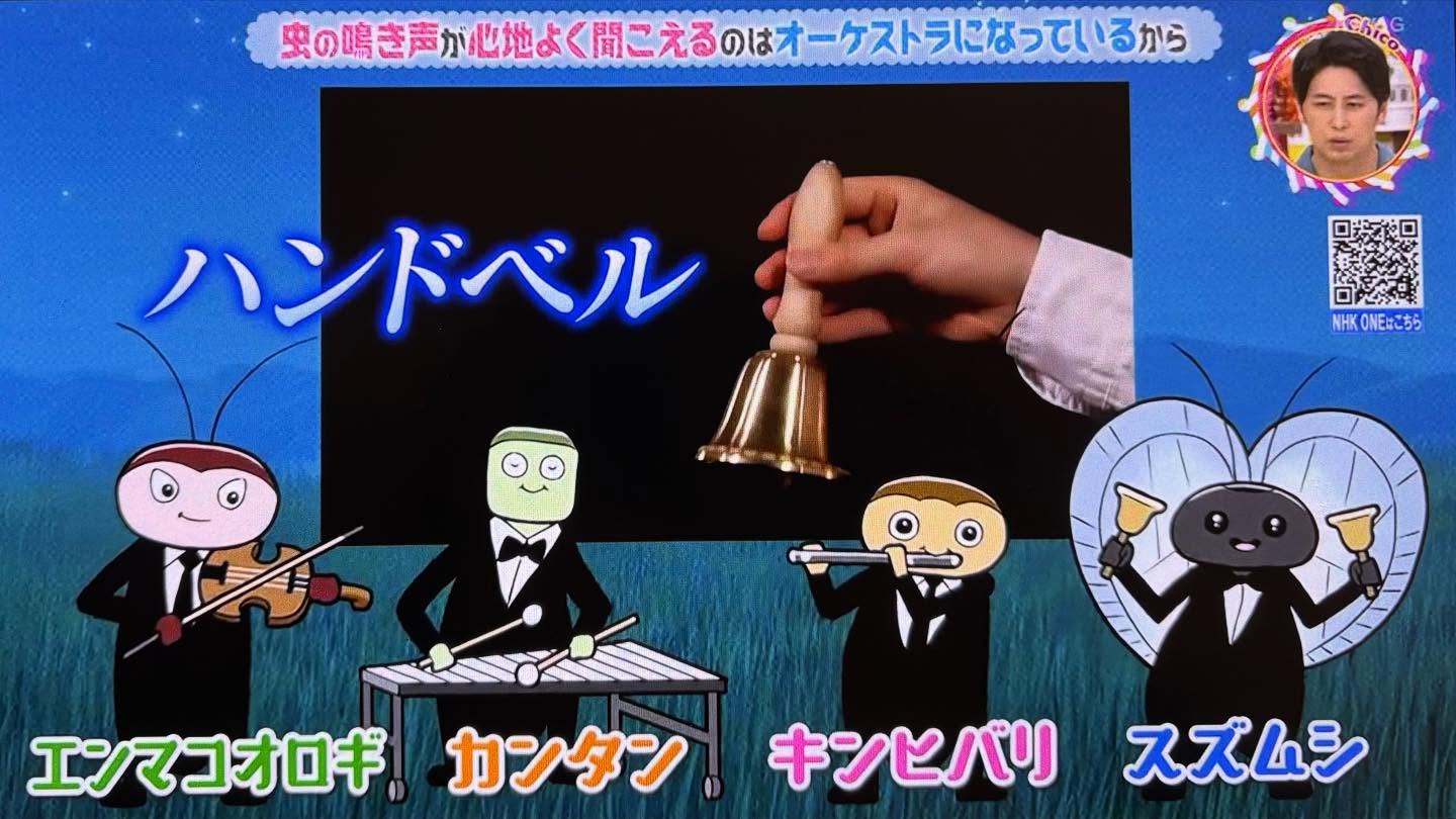 2025.10.24「チコちゃんに叱られる!」(NHK)のイラストを担当させて頂きました。『虫の鳴き声が心地よく聞こえるのはオーケストラになってるから』で使用された虫を擬人化したキャラクターイラストを描いてます。NHKオンラインの見逃し配信もございますので是非ご視聴ください◎