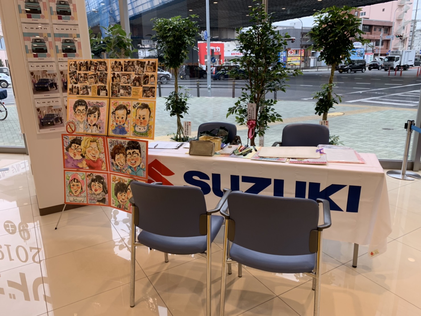 名古屋市瑞穂区にあるスズキ自販中部様のディーラー新店舗オープンイベントへ出張しました。ご来場されたお客様に似顔絵をお描きする内容のイベントです。お子さまを中心にご家族が多数ご来店。三日間、作家は日替りで90名近くの方を描かせて頂きました。JAFさんのこども免許証コーナーも人気でした。ありがとうございました!