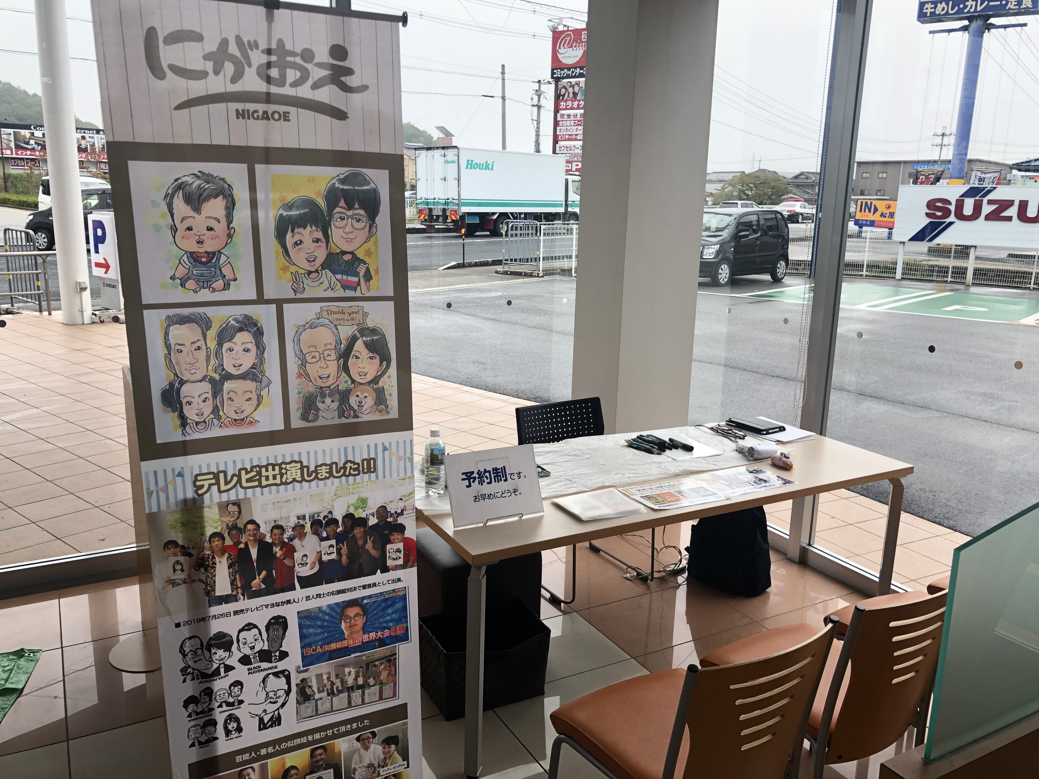 滋賀県彦根市にあるスズキアリーナ彦根店様にて開催されたお客様向けのイベントへ出張してきました。作家は日替わりで予約制の20分の枠でお子様を中心にたくさんの似顔絵を描かせて頂きました。多くの方に喜んで頂けました。ありがとうございました!